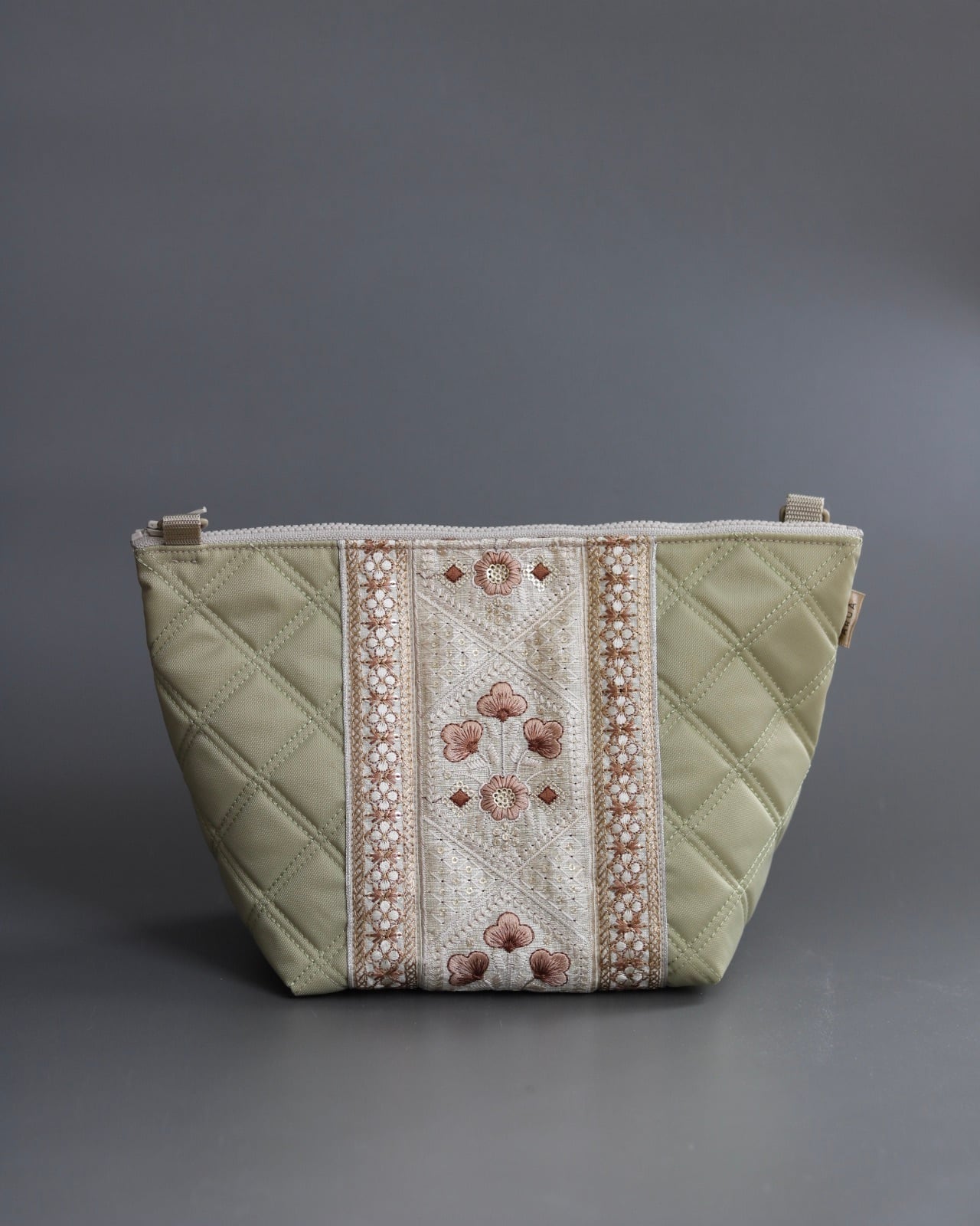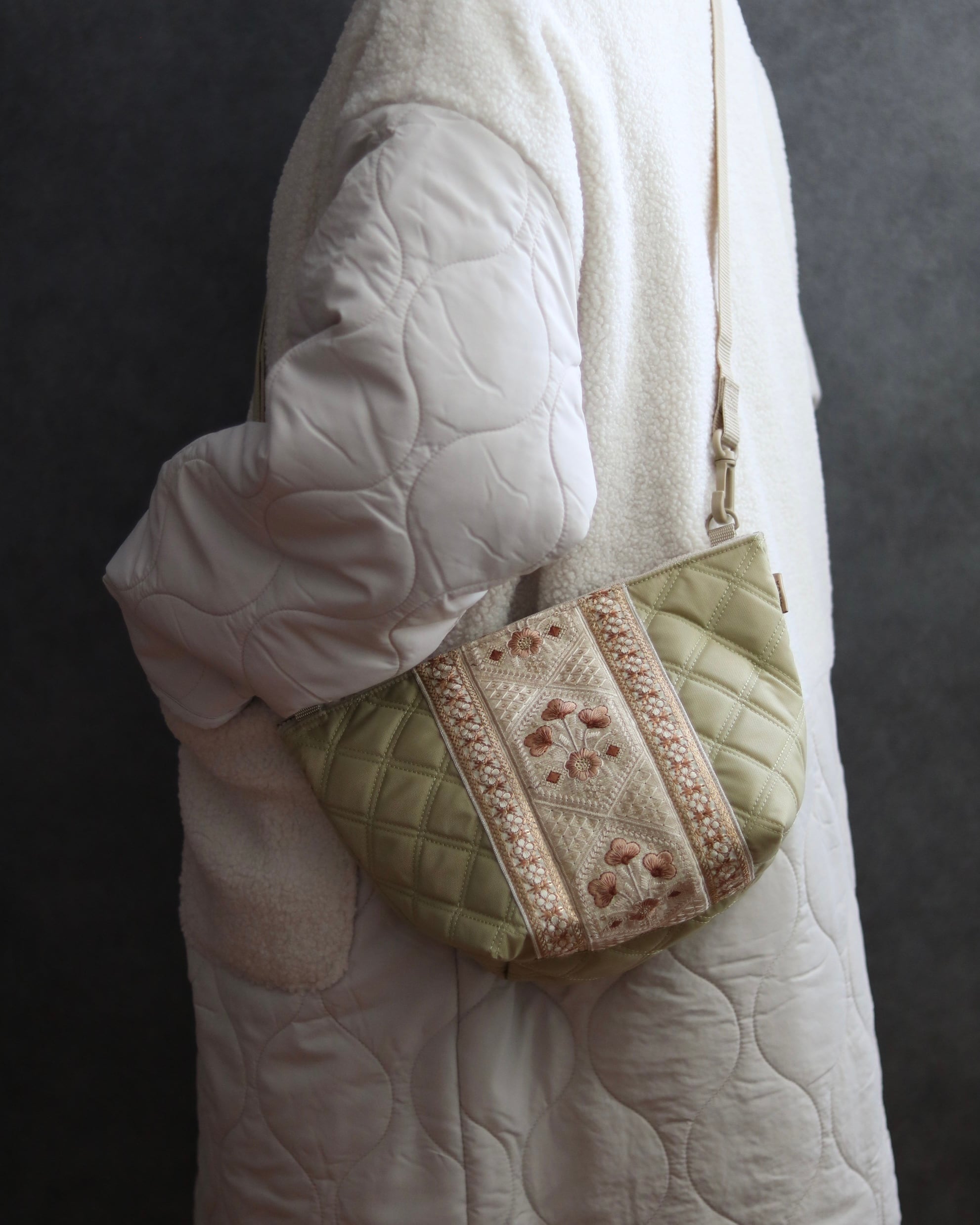 上品な刺繍リボンを装飾したショルダーバッグ。