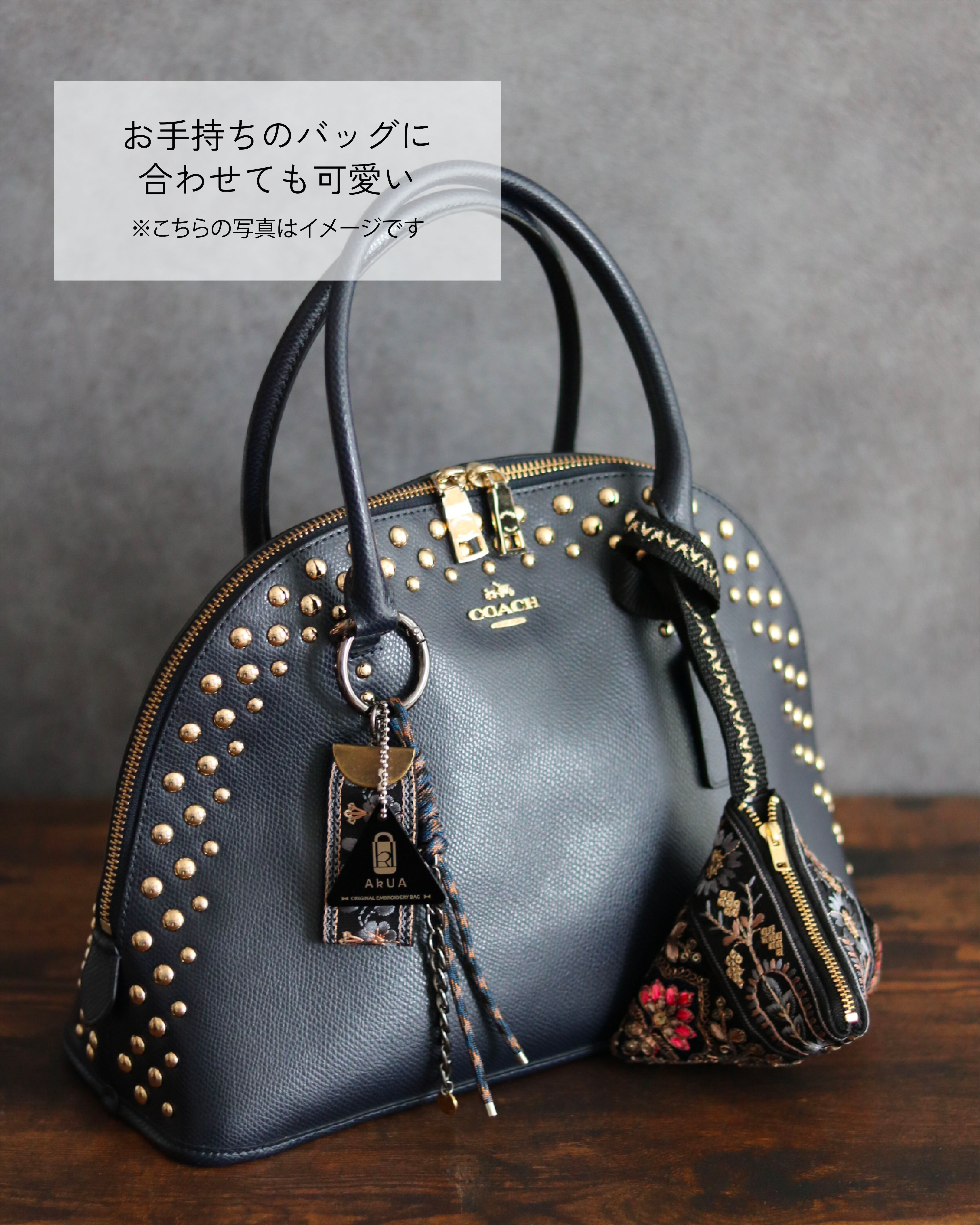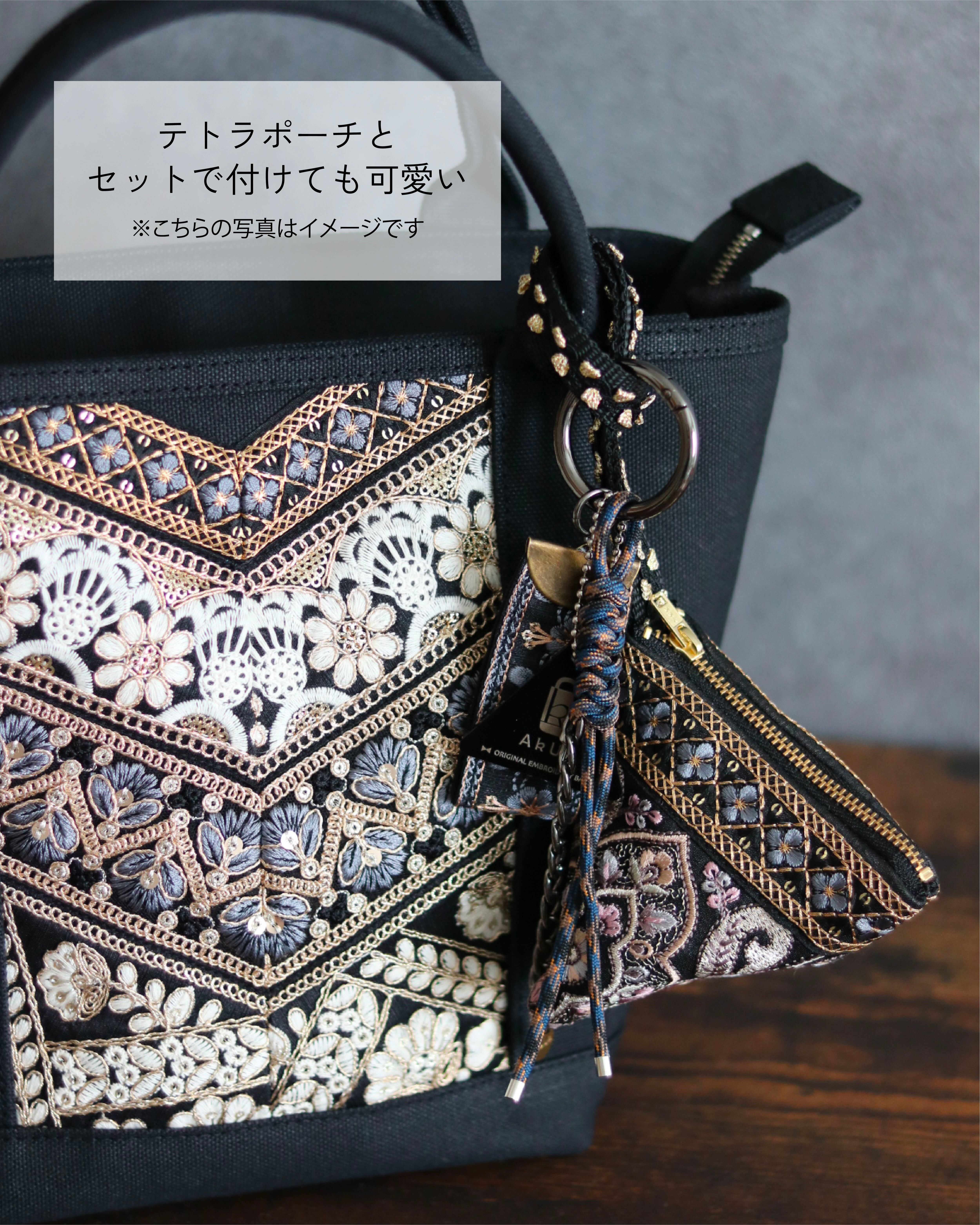 刺繍が施されたデザインが魅力的で、シンプルなバッグに華やかさをプラスします。