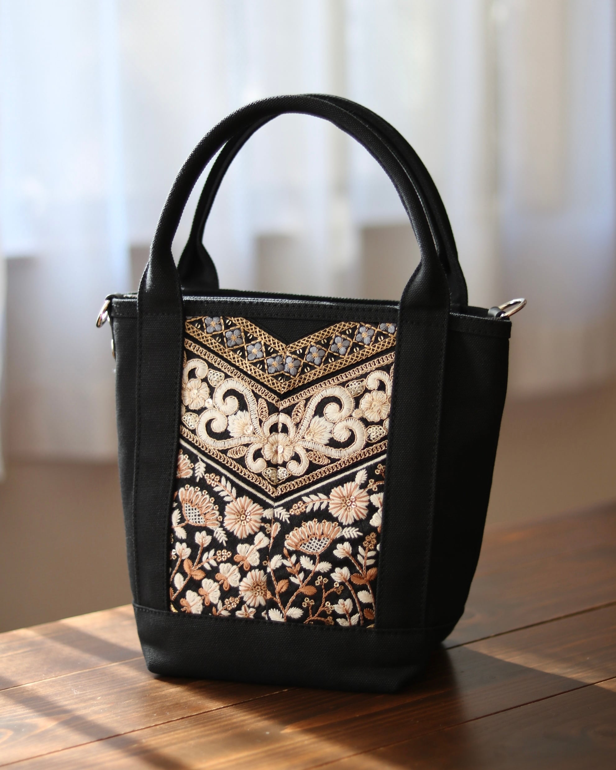 《Small size ファスナー・ショルダー付き》トートバッグ(ブラック)