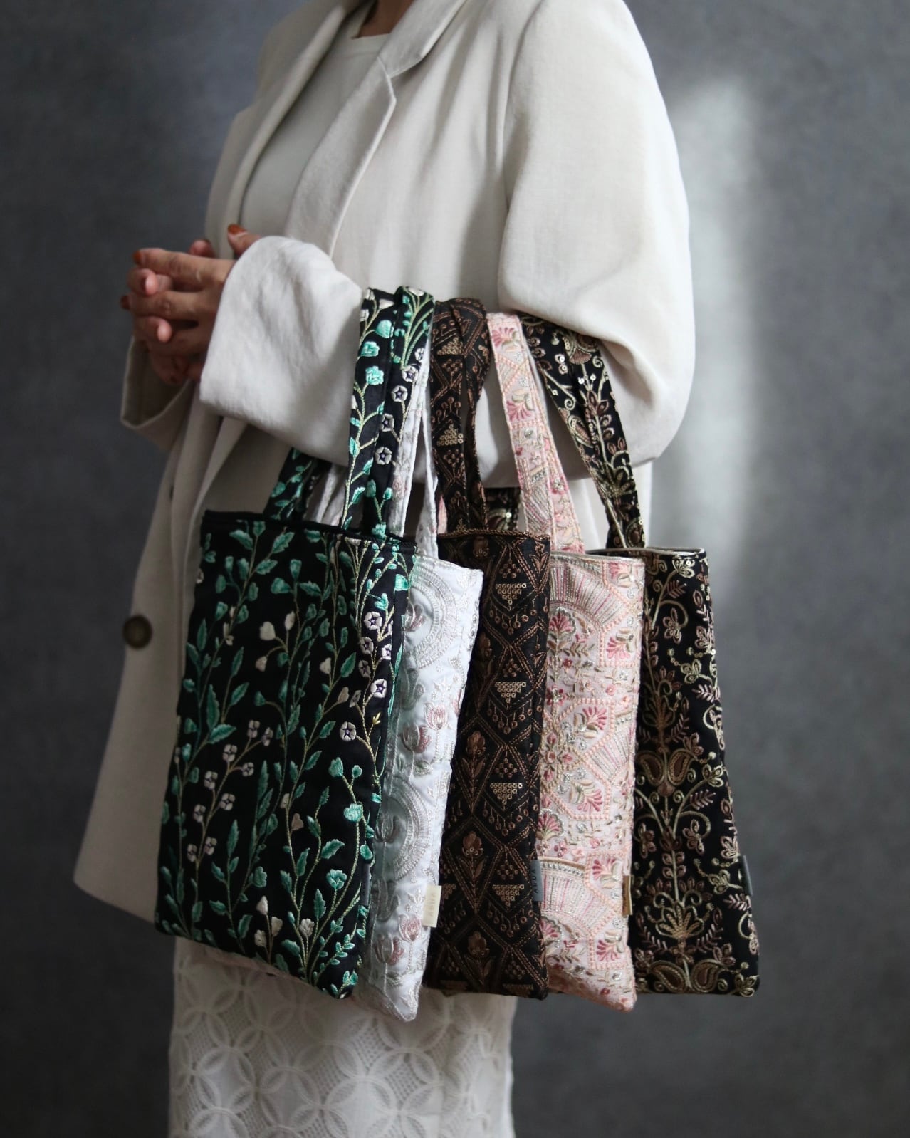 インド刺繍ファブリックを贅沢に使用したトートバッグです。