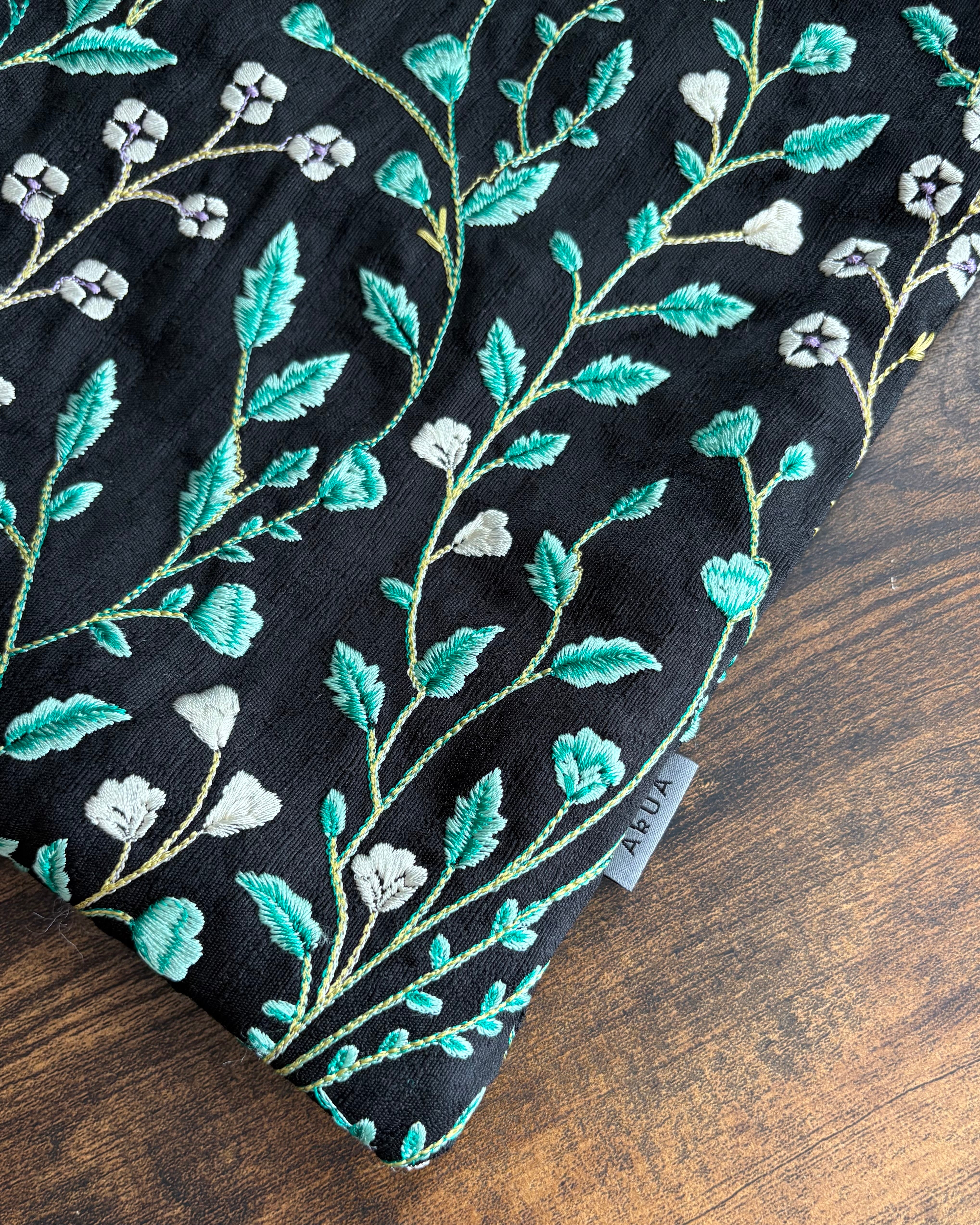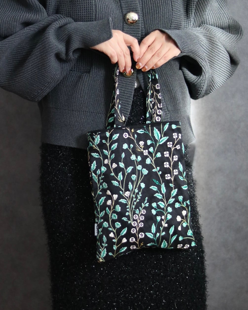 《グリーンの植物たち》インド刺繍ファブリックトートバッグ