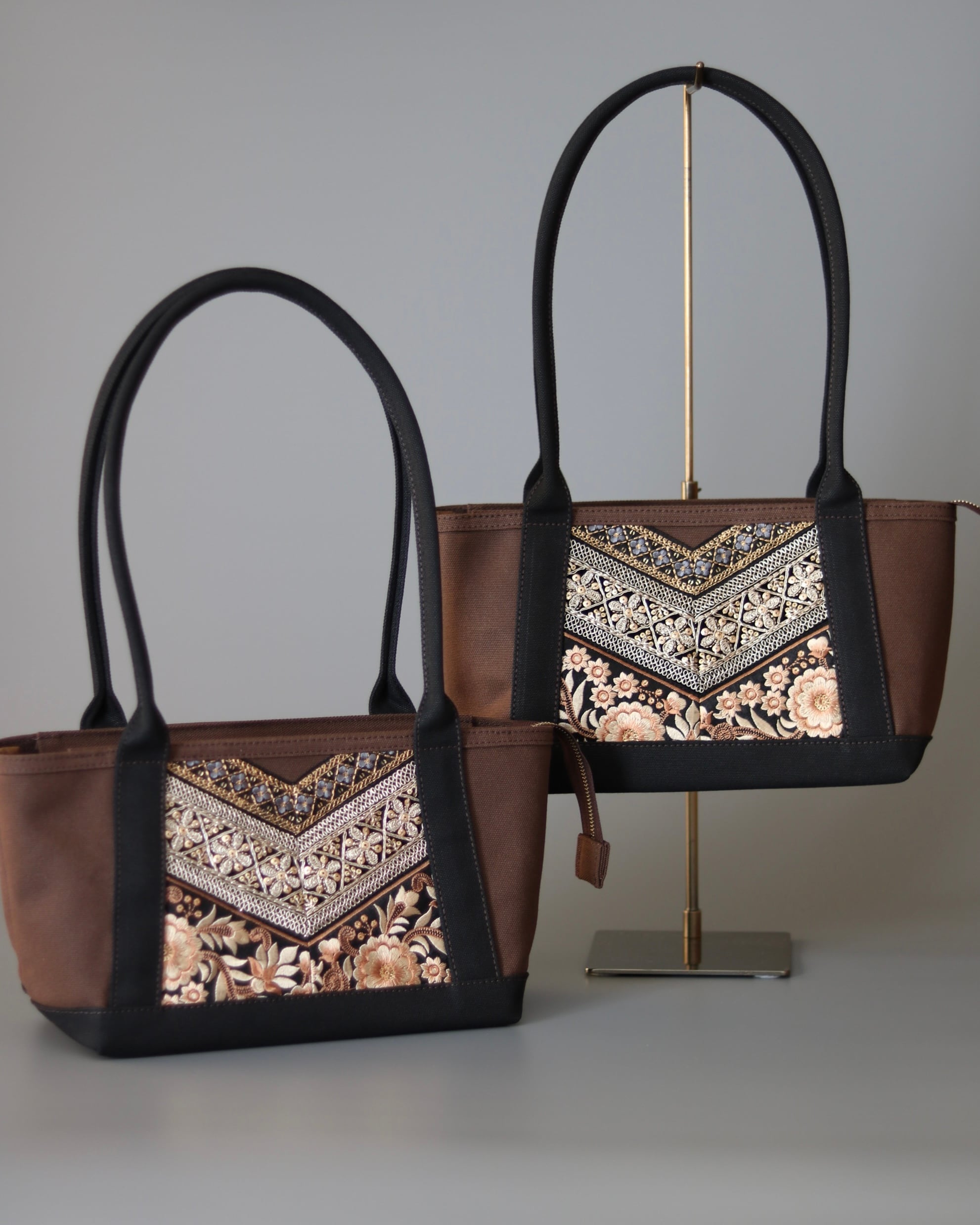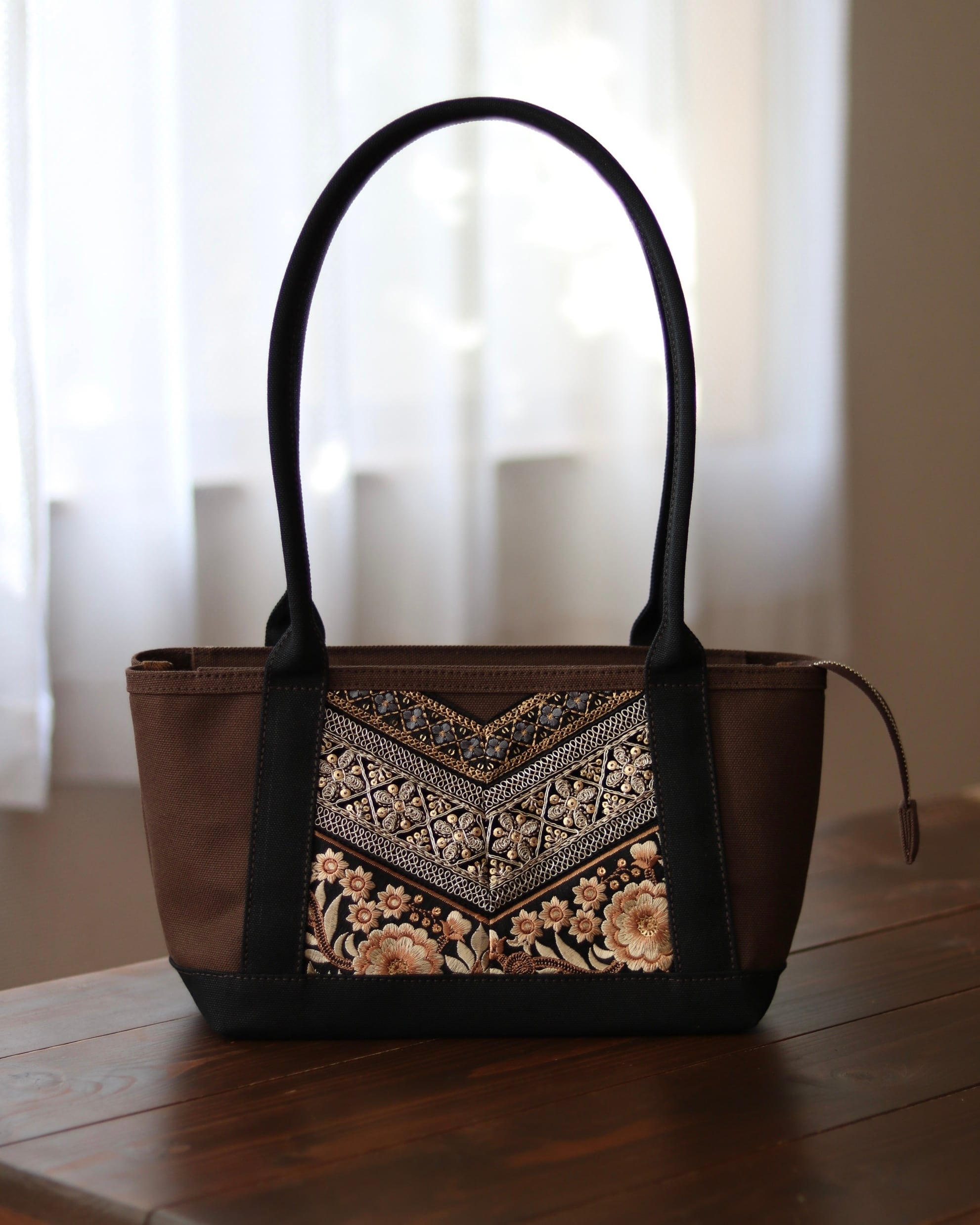 《YOKONAGA size ファスナー付き》肩がけトートバッグ (ブラウン×ブラック)