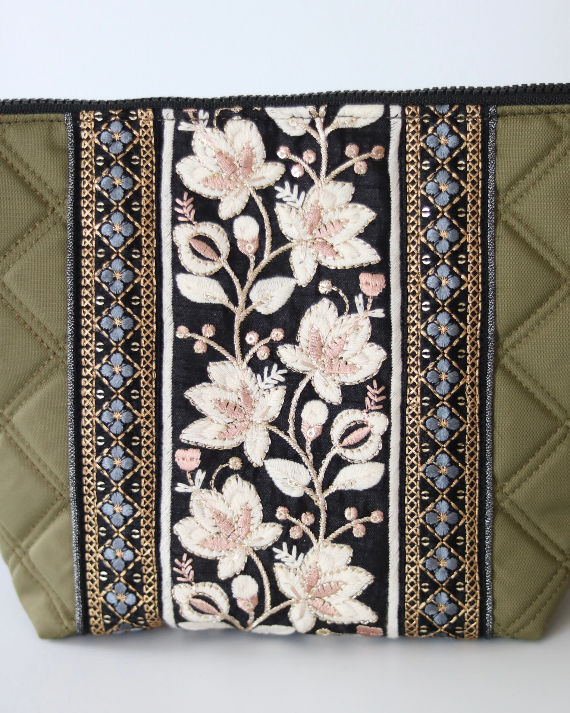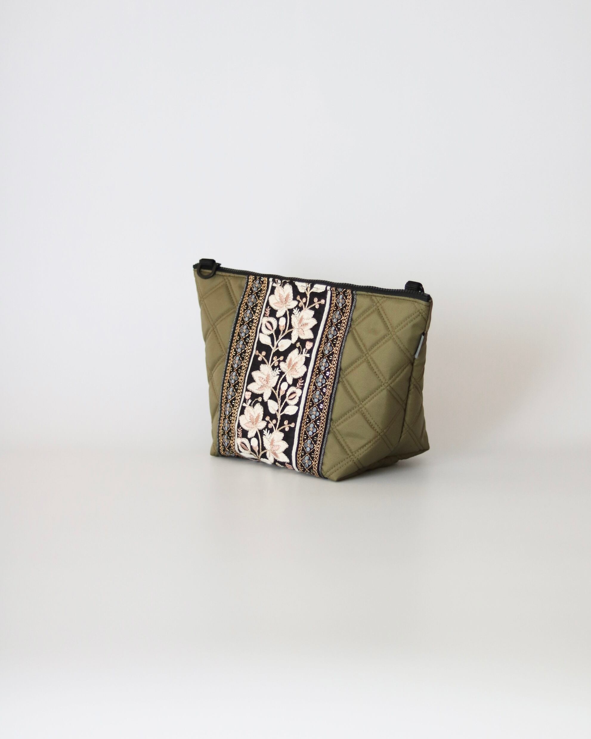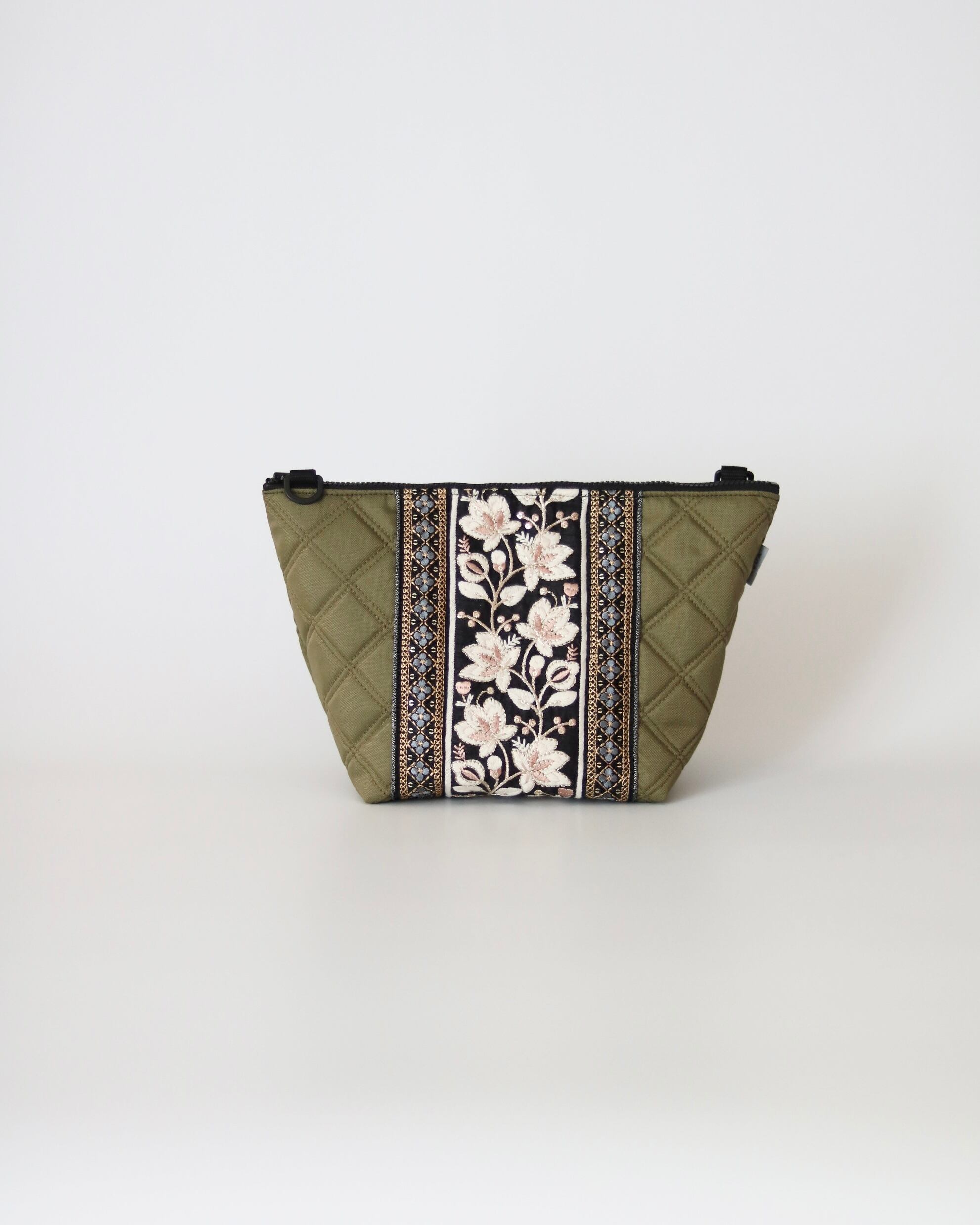 上品な刺繍リボンを装飾したショルダーバッグ。