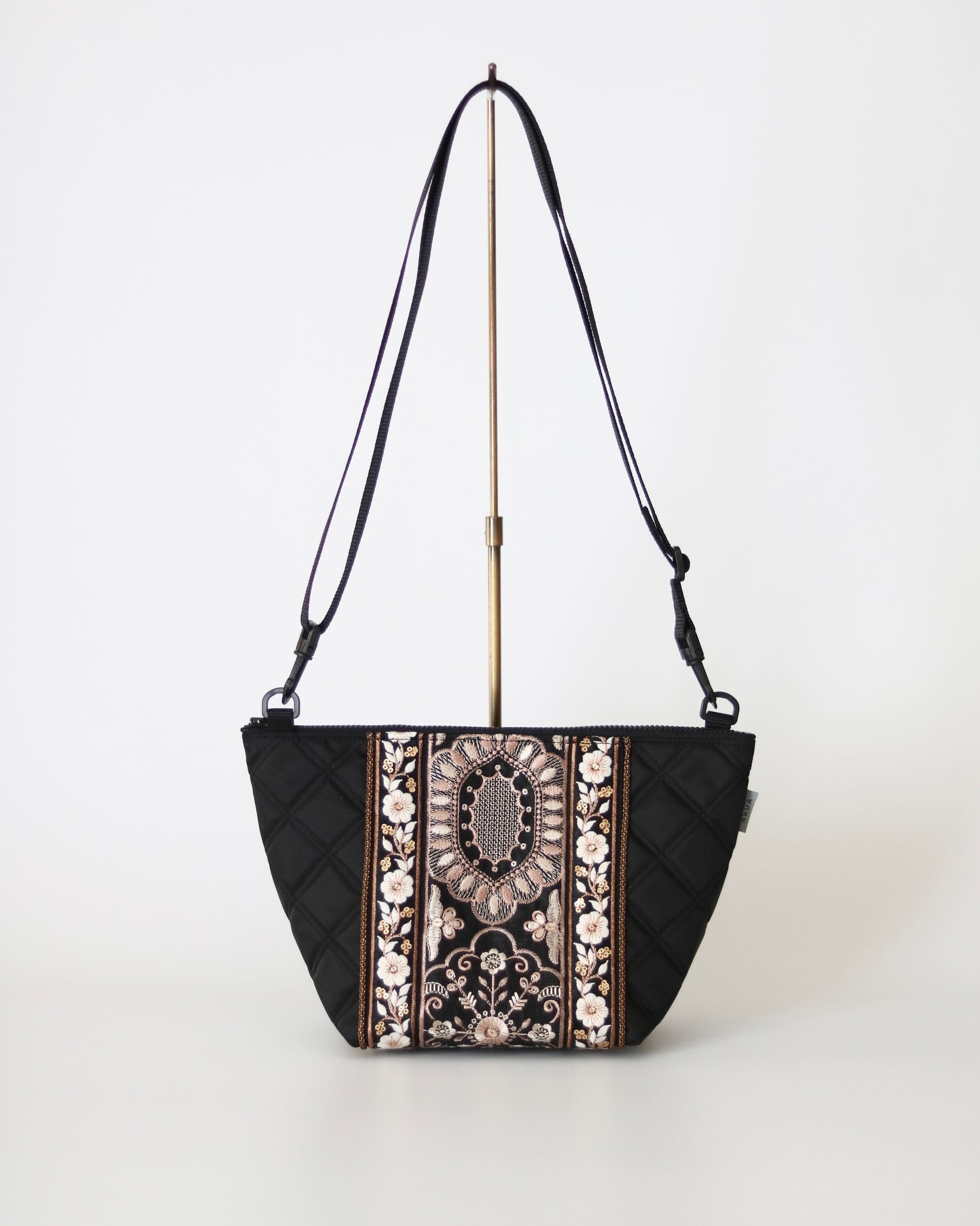 上品な刺繍リボンを装飾したショルダーバッグ。