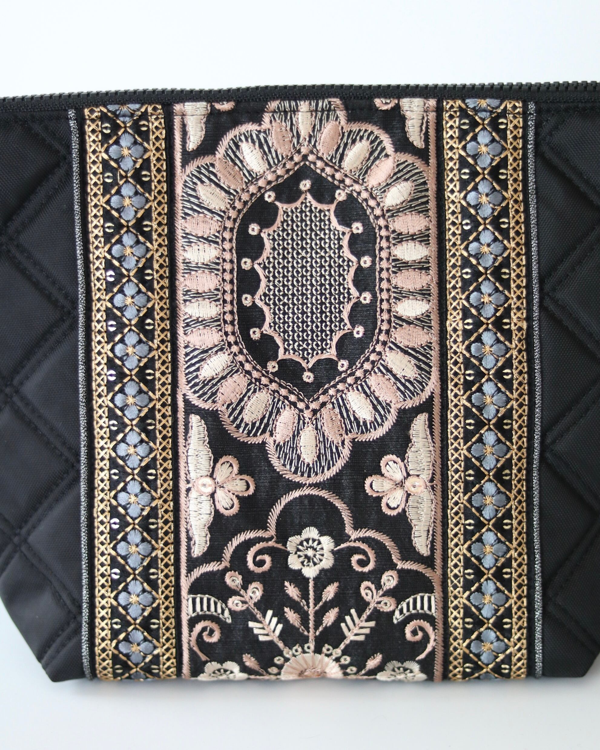 上品な刺繍リボンを装飾したショルダーバッグ。