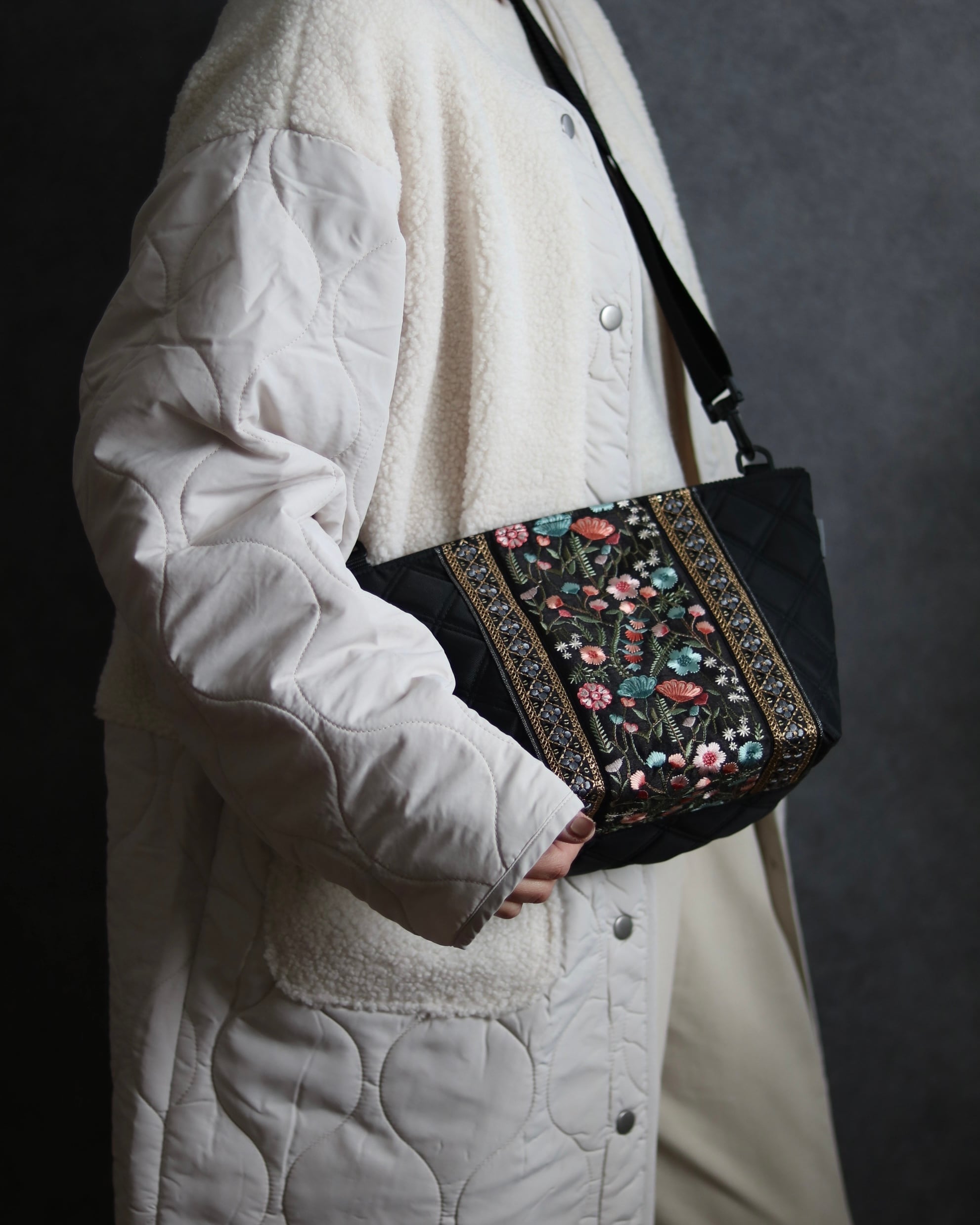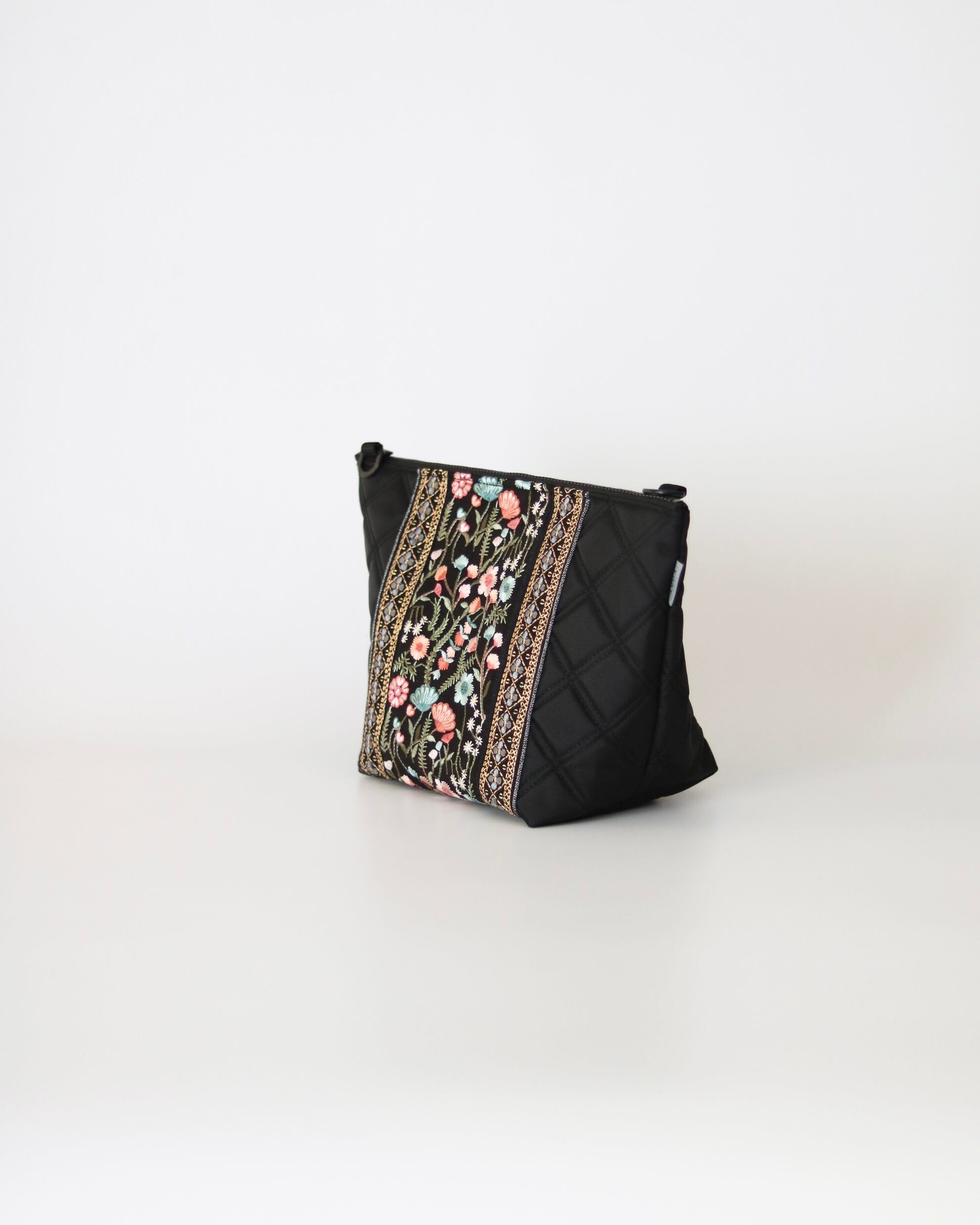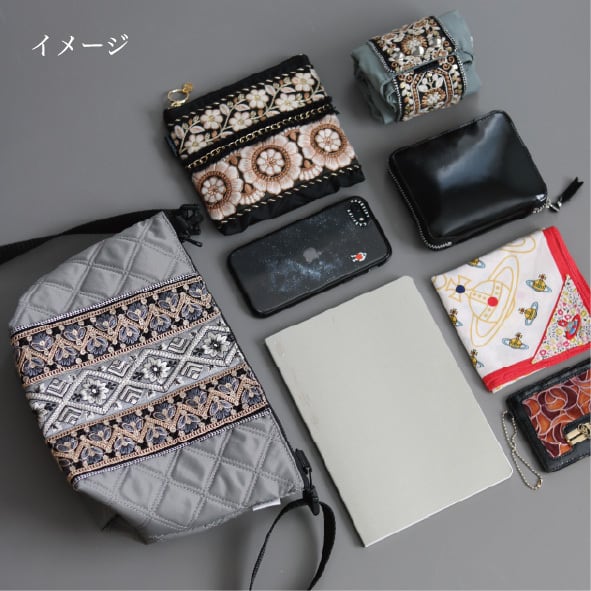 上品な刺繍リボンを装飾したショルダーバッグ。
