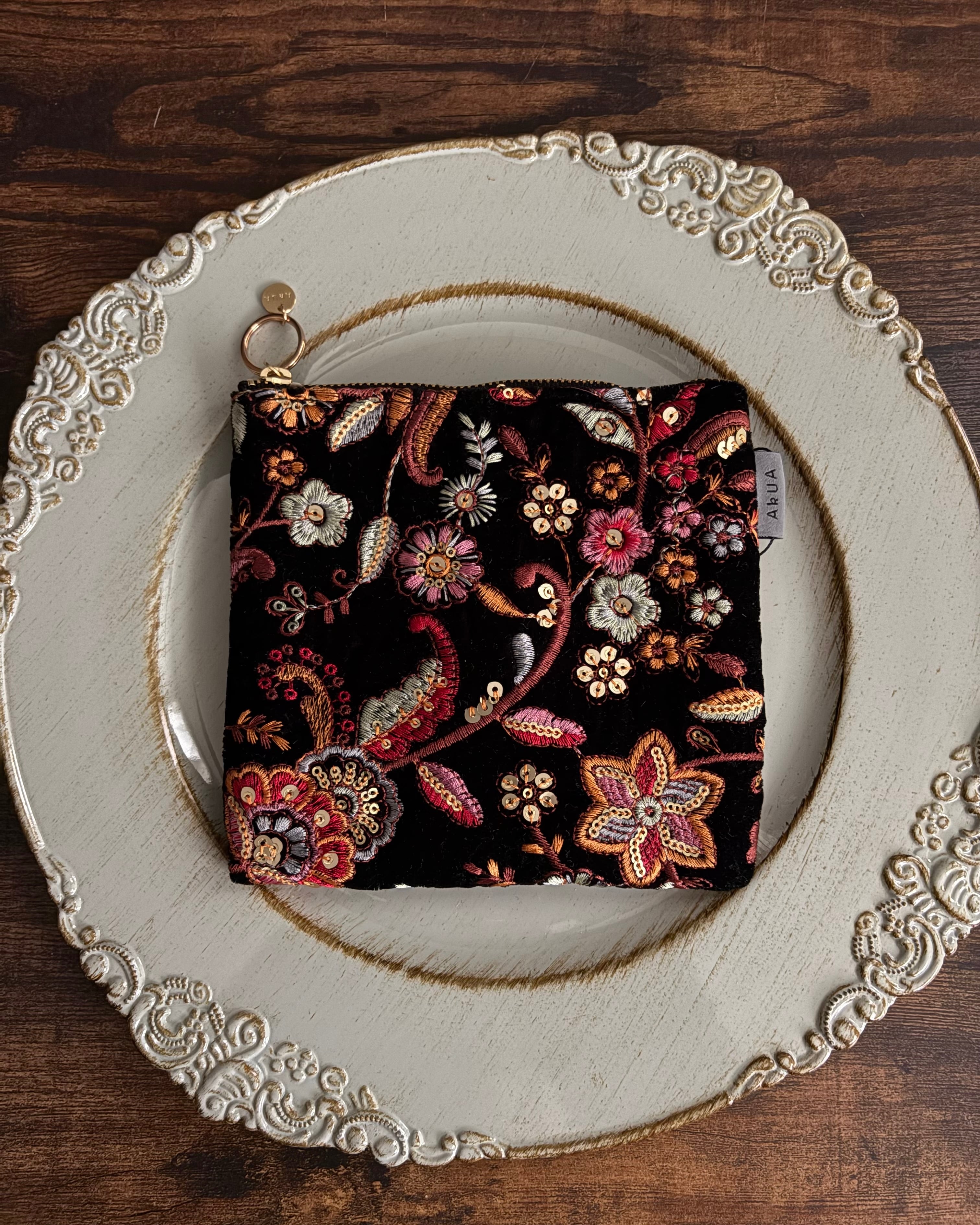 刺繍ファブリック スクエアポーチ