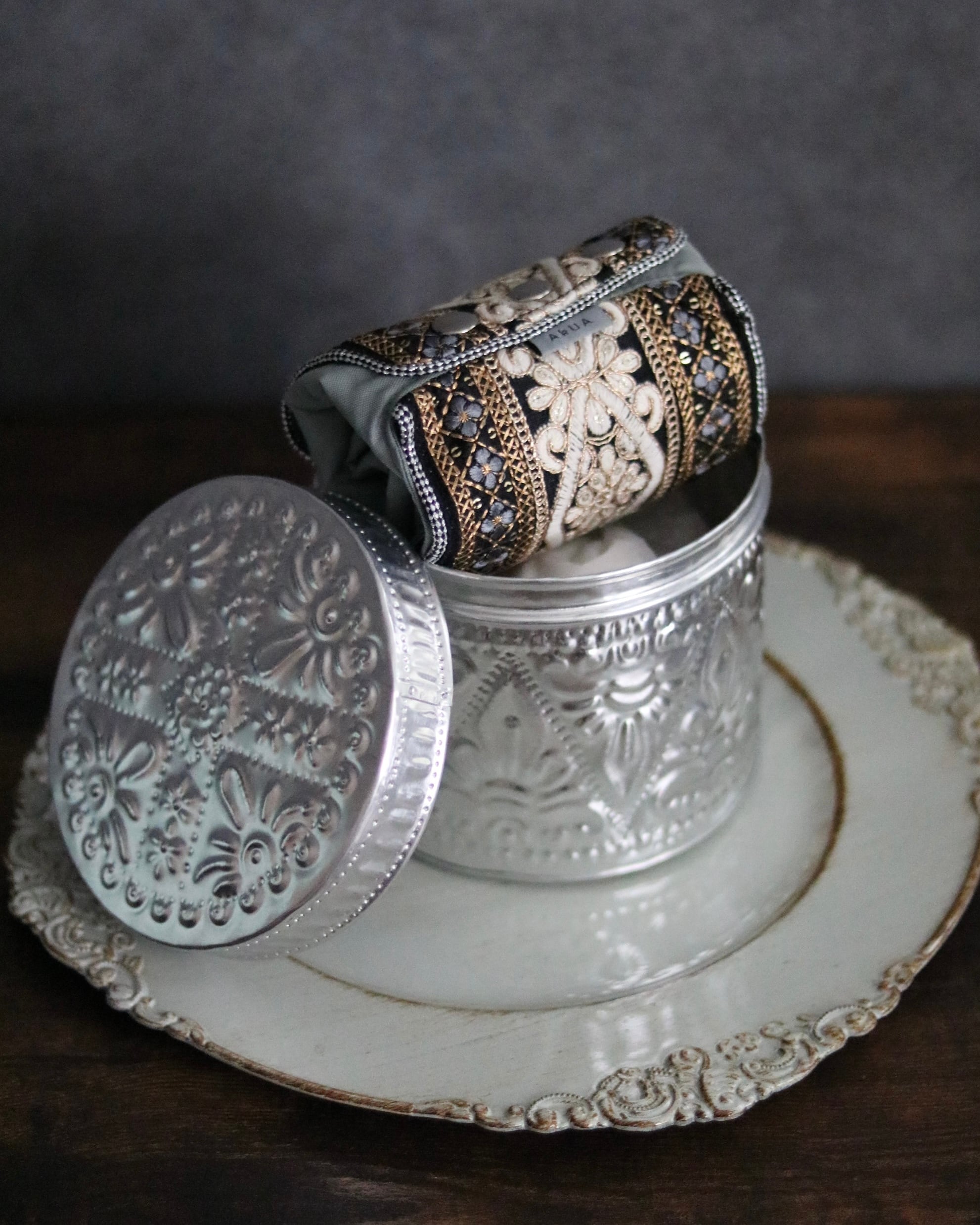 インド刺繍のリボンがアクセントになった