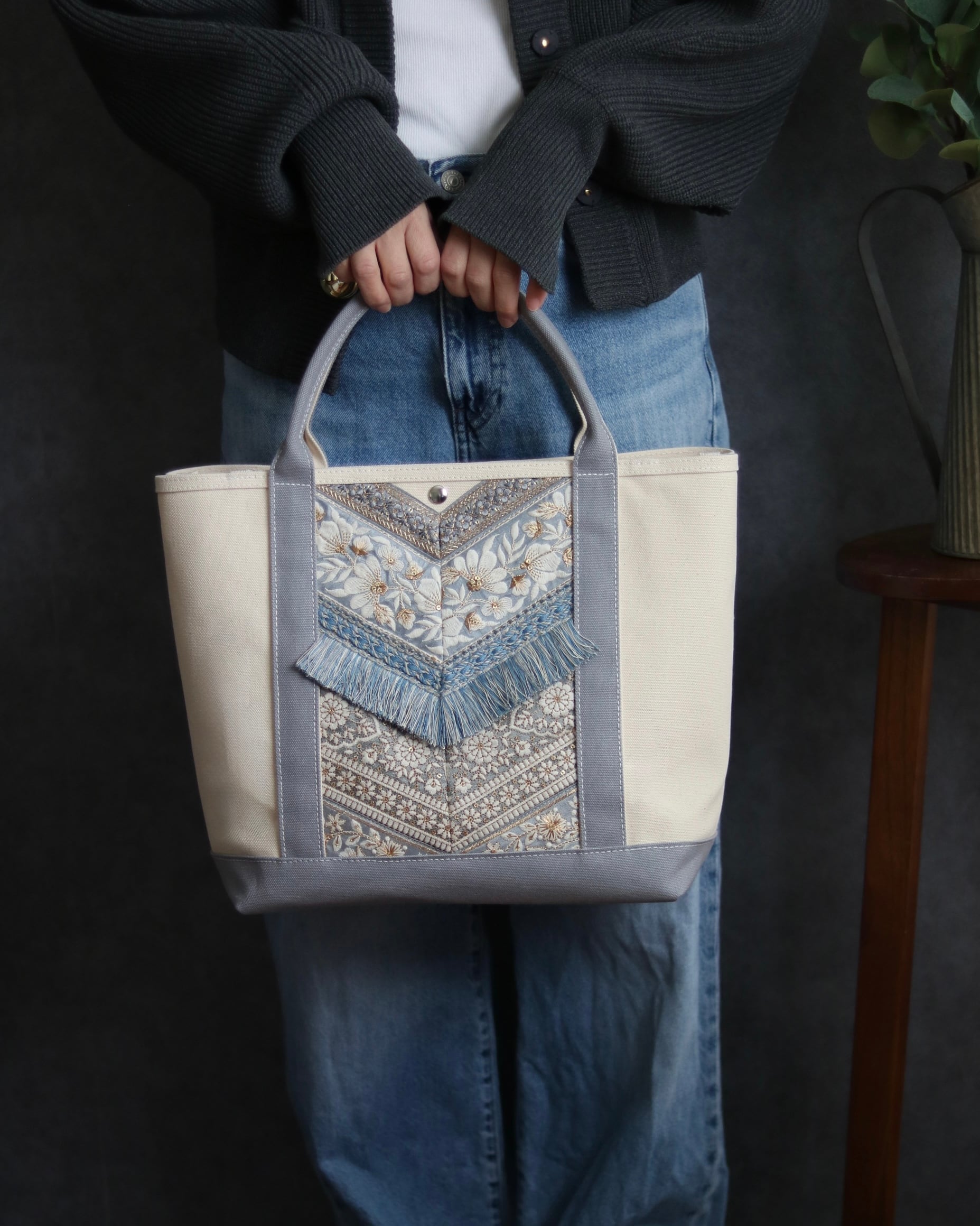 刺繍リボンを装飾デザインした、トートバッグ。