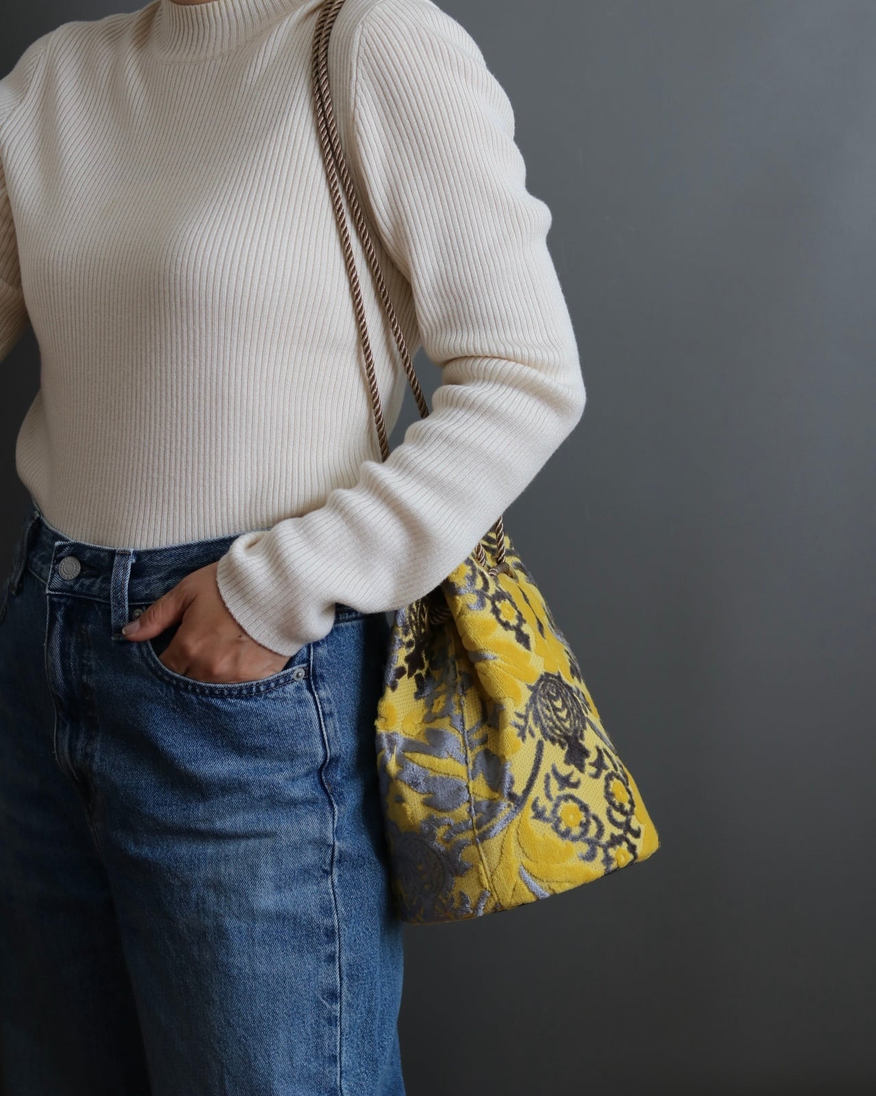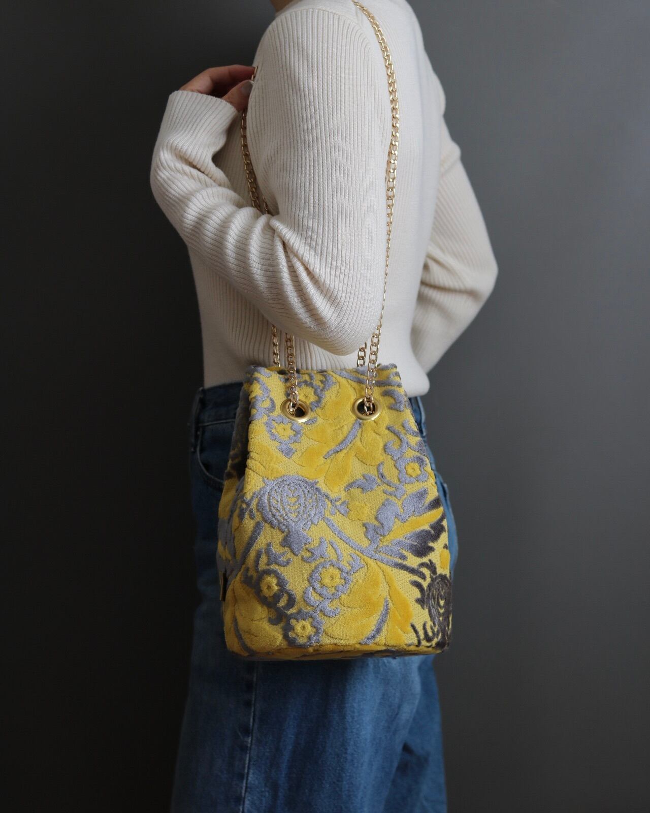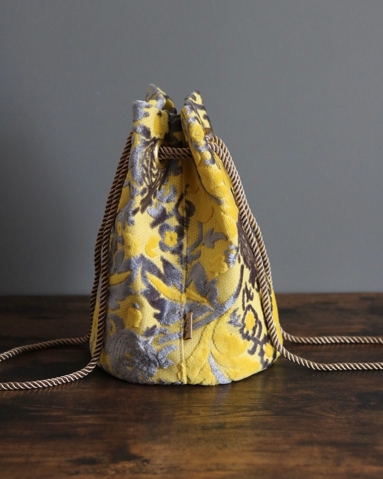 金華山織 ジャガードパイルファブリック 巾着バッグ(イエロー)